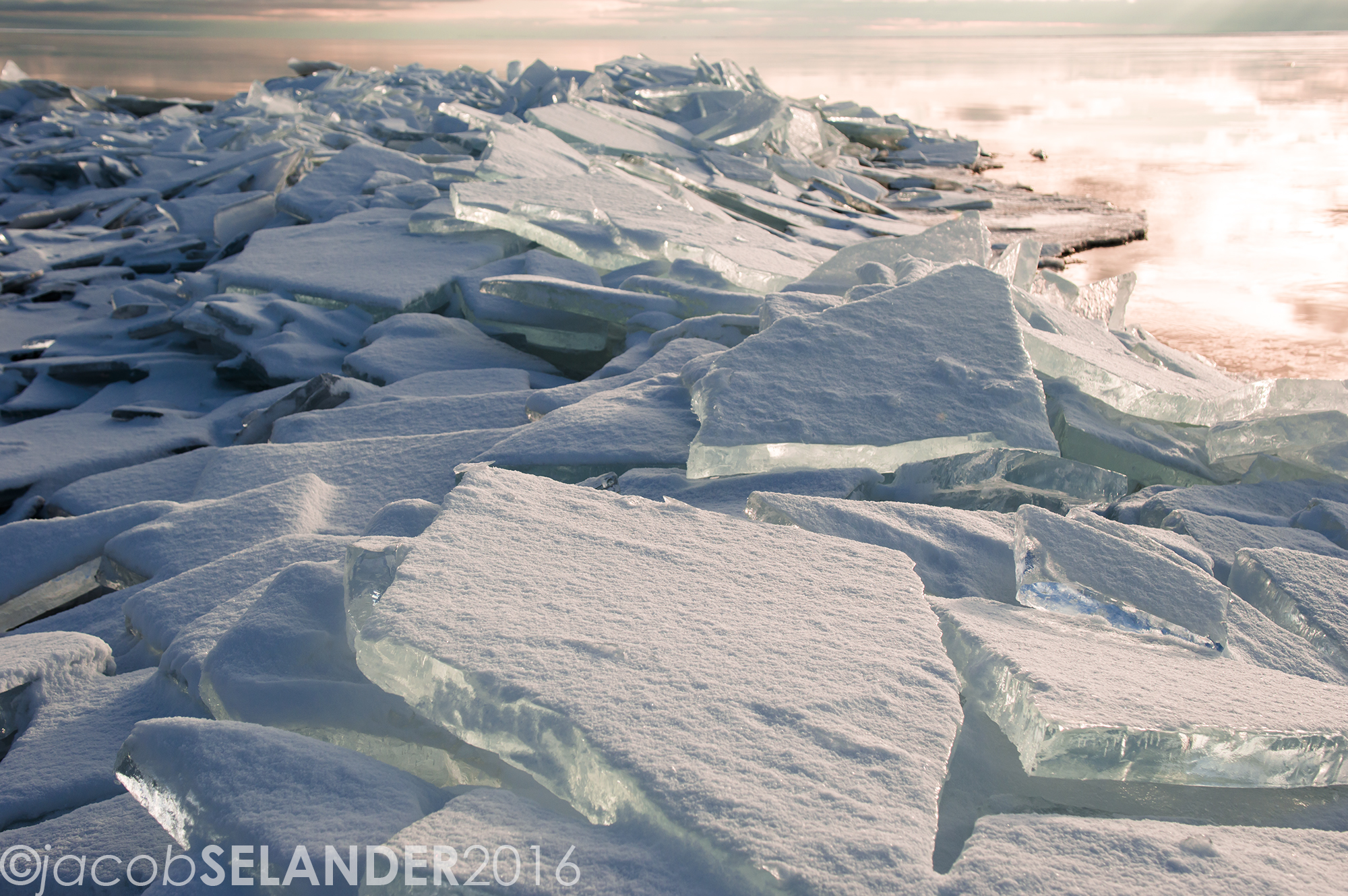 Below I have posted a link to a short, 2-minute video of the “Ice Tectonics” I shot on 13 February 2016 (would have been longer but the wind chill was around -20 F!), and a sampling of the photos from January and February. I hope you enjoy!